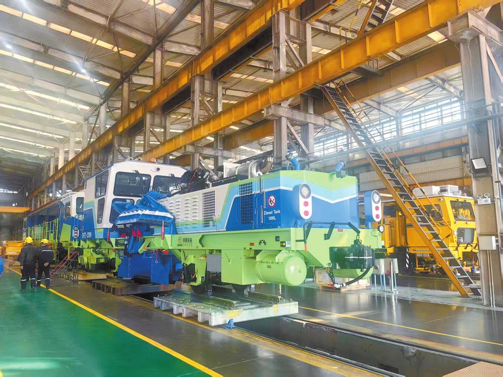 向泰国出口的整套铁路大型养路施工车组。 本报记者 张雁群 摄