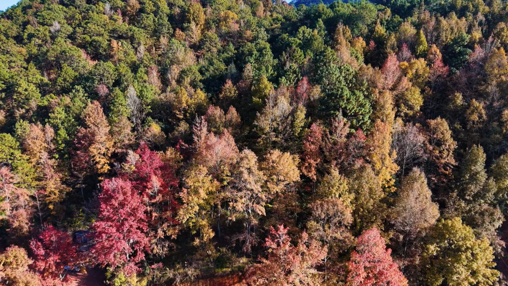长海村以青山为屏,碧水为带。得天独厚的自然馈赠,滋养出这片远近闻名的枫林秘境。当秋意散去、冬韵初显的时节,枫林便悄悄卸下盛夏的葱郁绿装,换上一袭红、橙、黄交织的绚烂华服——深红似火燃尽热烈,橙黄如霞浸润温柔,浅绿若玉留存生机,三色渐变交融,织就满山斑斓。