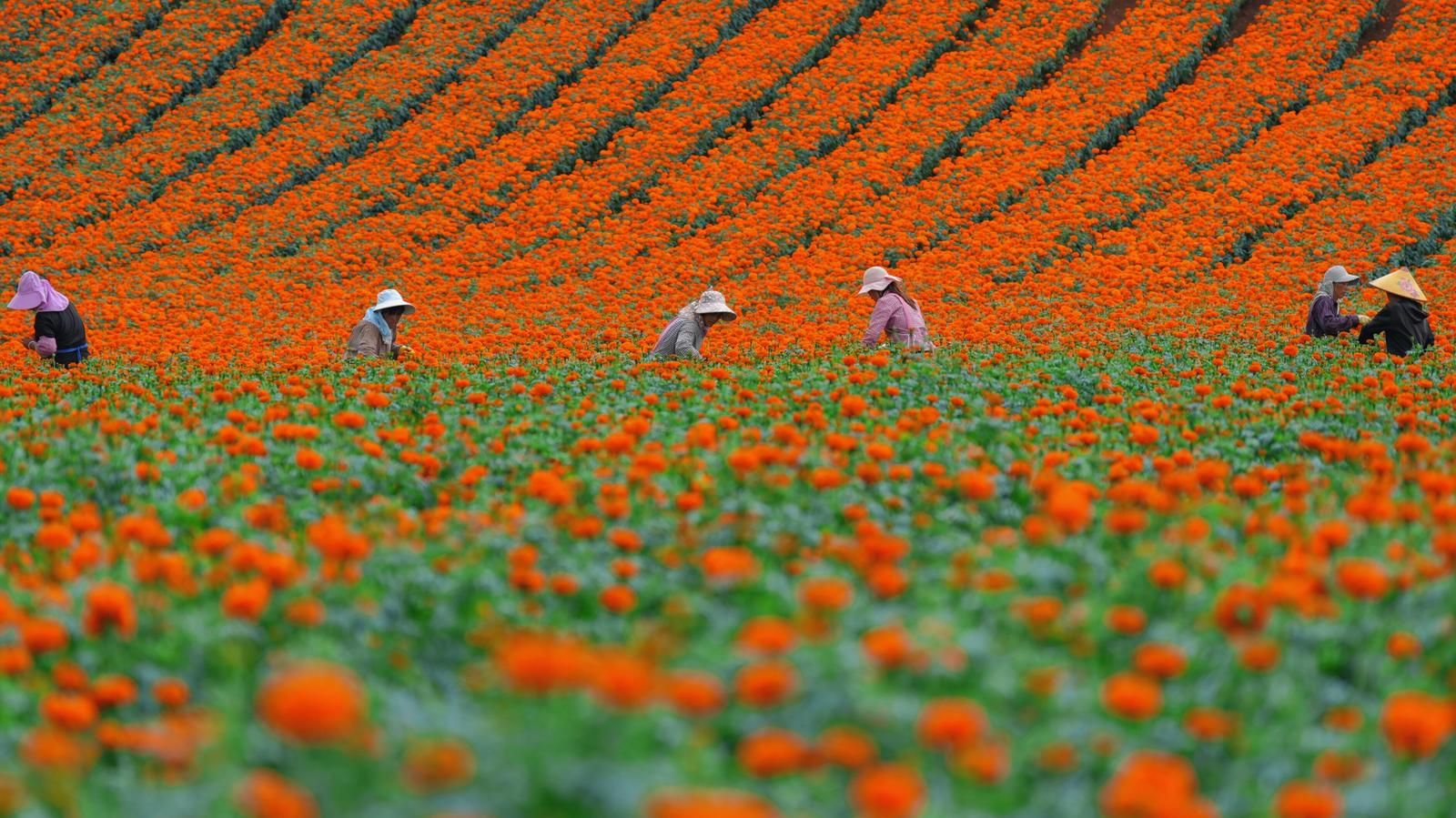 在大唐云南滇东新能源事业部的推动下,金色万寿菊成为串联产业链的关键纽带。大唐云南滇东新能源事业部乡村振兴驻村工作队主动联合丘北县相关乡镇及合作社,共同建立标准化种植基地,为农户统一提供花苗与技术指导,并建立保底收购机制。数据显示,自项目落地以来,丘北县万寿菊种植规模从2011年的5000亩扩大至75800亩,群众人均增收从4000元提升至18100元,增长率达352%。这朵金黄色的“致富花”,已成为地企合作的成功典范。