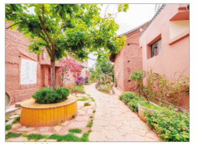 村庄依山而建,自然风光秀美,植被丰茂。建筑风格独特,既不是彝族的土掌房,也不是汉族的一颗印,而是两者的有机结合,房屋的结构、门窗的制式,看得出受到汉族一颗印建筑的深刻影响,但是又不受其约束与限制,具有明显的地域特色。此外,走进村落,在道路两侧墙壁上的一幅幅民族风情壁画,也别有一番风情。