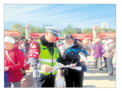 工作人员在街头开展法治宣传。禄劝县融媒体中心供图
