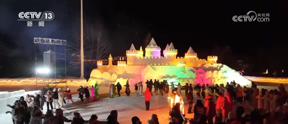 夜幕下的漠河市北极村被灯光点亮,惟妙惟肖的雪雕有了不一样的颜色。在小广场上,天南地北的游客聚在一起携手起舞,并用镜头记录下浪漫的烟火。为满足滑雪爱好者的需求,当地雪场今年首次开放夜滑,并新增了雪道。