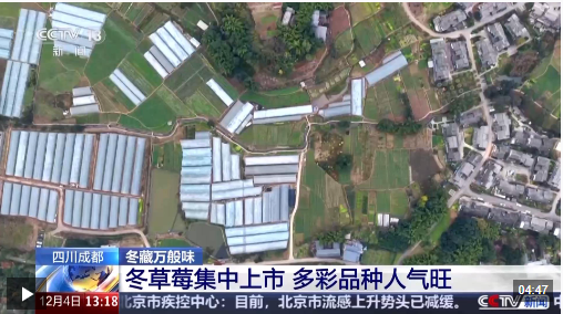 总台记者 赵雄:在四川天府新区草莓种植园,有各种不同的草莓温室大棚。据了解,这里是成都冬草莓种植的核心区,种植面积超过2000亩。从2011年开始,当地就引进了这种智能温室大棚,开启了立体草莓种植。