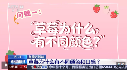 在四川成都,4万亩冬草莓已进入丰收季。今年上市的除了常见的红草莓之外,还有白草莓、粉草莓等品种。