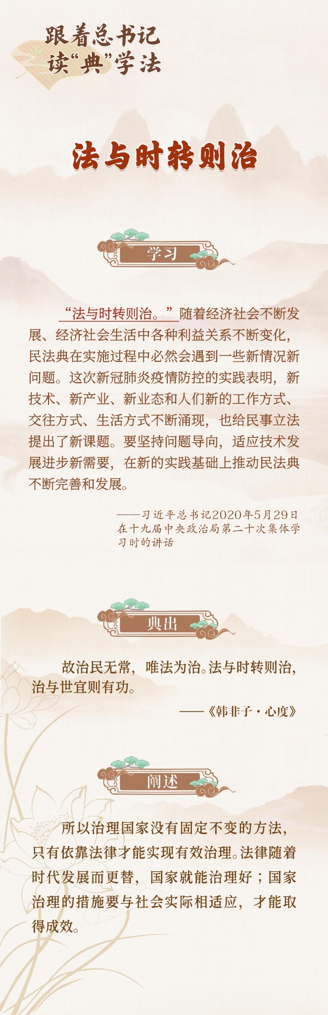 2025年全国“宪法宣传周”,法治网《跟着总书记读“典”学法》栏目,诚邀您一同品读《习近平法治文选》第一卷中的法治典故,照鉴古今智慧,汲取思想伟力,共赴法治新程。