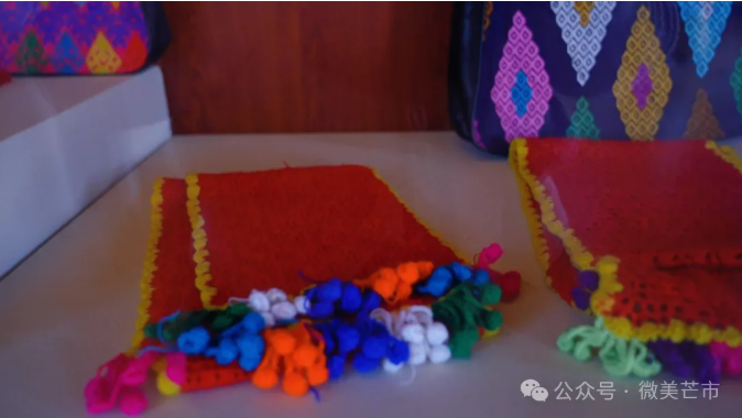 如今,景颇织锦被越来越多人看见并喜爱。何木栽和孔志祥常常一起交流想法、研究新样式,共同完成来自各地的订单。她们也走进校园教孩子们织锦,还积极参加各类非遗展示活动。“她们俩都很忙,一天到晚都在织各种作品,像上班族一样准时。”鲍道南笑着说道。
