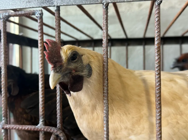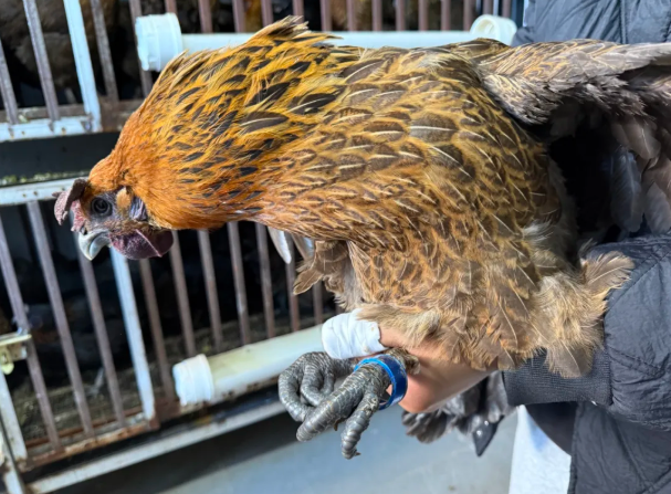 戴着蓝色溯源环的大芦山土鸡。