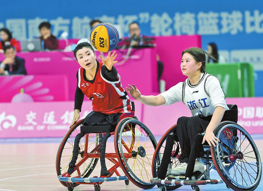 图为云南轮椅女篮队员在比赛中奋力拼抢。(云南日报记者 娄莹 黄兴能摄)