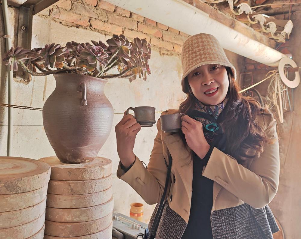 越南媒体人在曲靖体验陶艺制作。