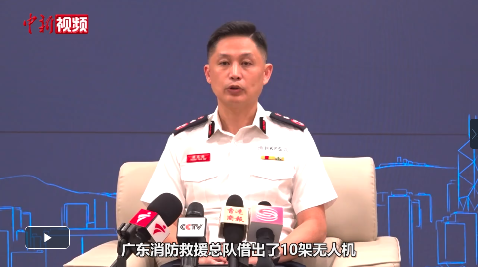 12月6日,香港特区政府消防处处长杨恩健接受记者采访时表示,在香港大埔宏福苑火灾救援中,广东消防救援总队借出的10架无人机,显着提升了无人机在火场监测和搜救的效率。这些无人机借助热成像技术,可精准定位楼宇火势严重区域,为消防部门制定灭火策略提供关键依据。在其中一起救援中,无人机成功监测到天台两名待救人士,助力消防人员快速将其安全转移至地面。(记者 孙悦)
