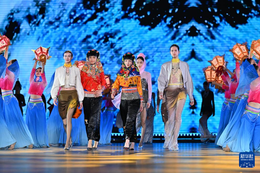 开幕式及非遗时尚秀活动以泉州非遗为底色,融汇海丝沿线多个国家和地区的传统表演艺术与现代美学表达,为观众呈现连接中外、美美与共的文化盛宴。(新华社 记者姜克红 摄)