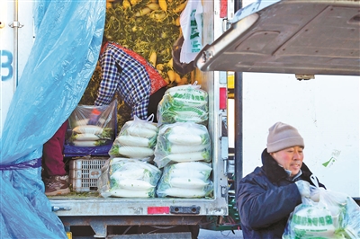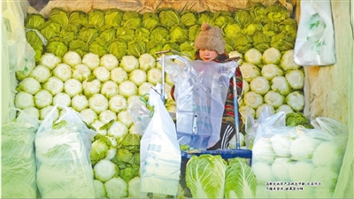 在新发地农产品批发市场,白菜作为冬储菜顶流,被装袋分销