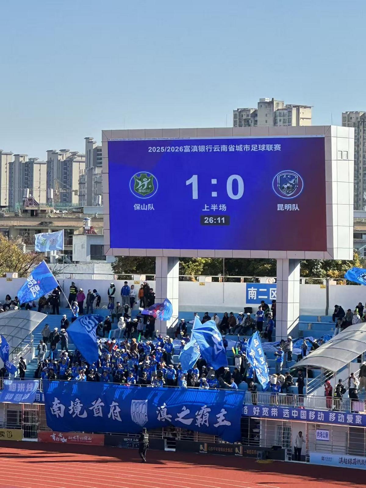 12月14日下午,2025/2026富滇银行云南省城市足球联赛(滇超)第一轮第八场比赛中,保山主场对阵昆明,在常规比赛时间中1:1战平,随后在点球决战中,保山队最终以6:5斩获滇超首场比赛的胜利。