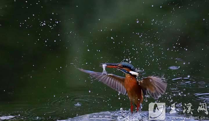 昆明“鸟友”镜头下捕鱼的翠鸟。(通讯员 唐伟 摄)