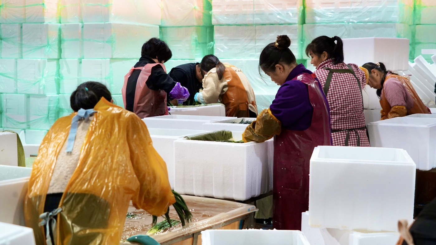 “这批葱上午刚从地里采来,下午就要完成清洗、分拣、打包,和碎冰一起装箱发往全国各地。”负责人杨志勇穿梭在车间,目光紧盯着每道工序。工人们动作娴熟,行云流水。
