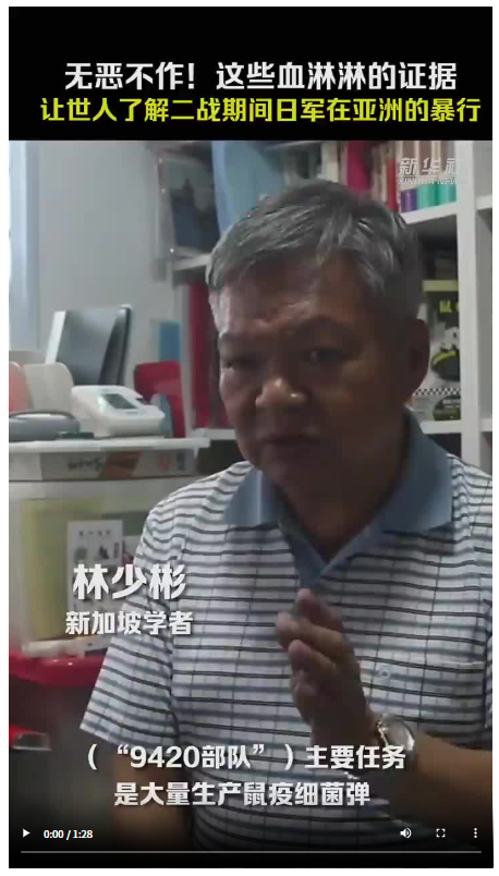 研究细菌战部队的新加坡学者林少彬说