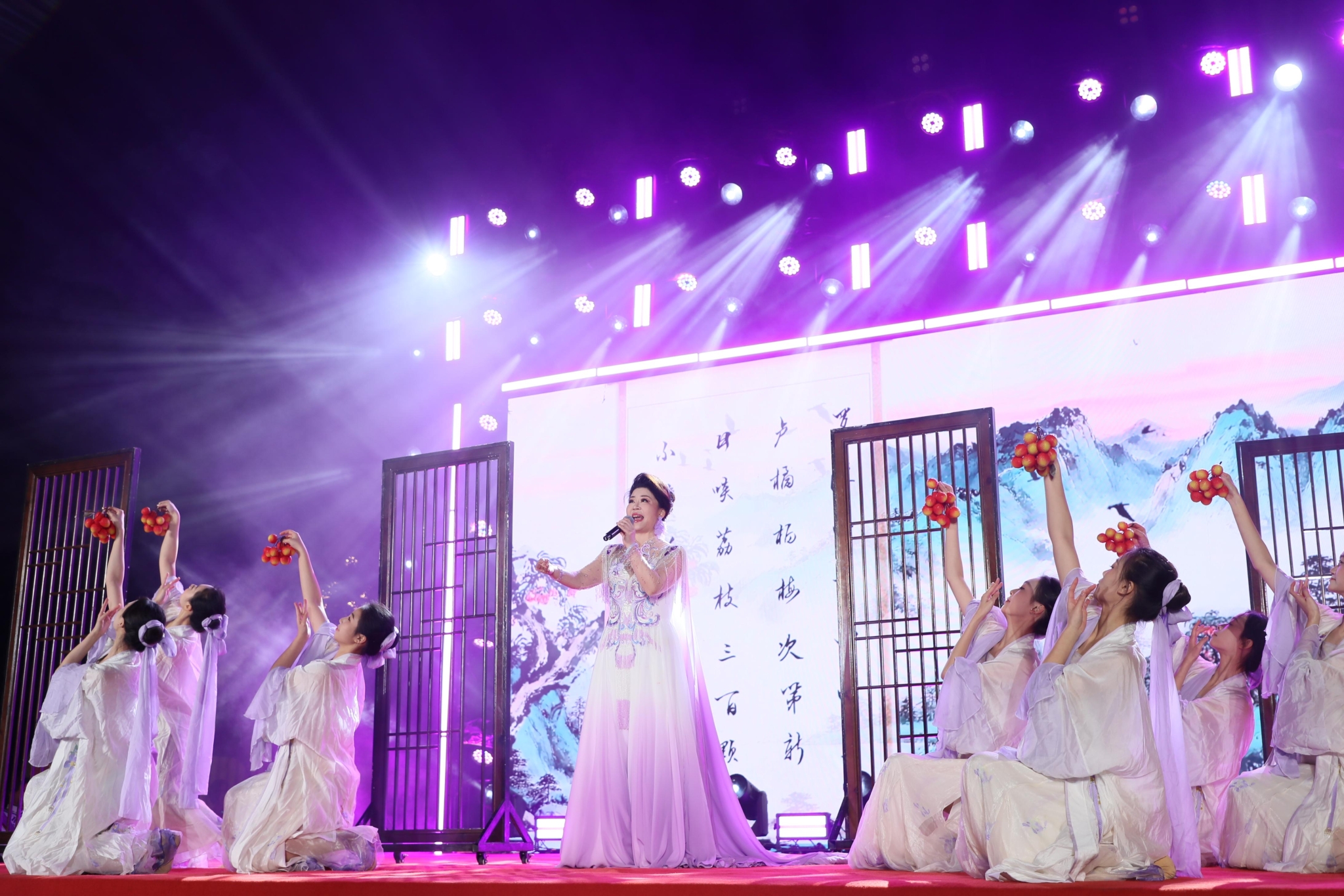 原创歌舞《荔枝吟·不辞长作岭南人》是本场音乐季的一大亮点。该作品由广外艺艺术教育学院程争副院长根据苏轼《惠州一绝》进行粤曲风格创编,并在广州市粤曲粤剧 + 创新大赛中荣获金奖。粤曲作为广东本土的传统艺术形式,有着深厚的文化底蕴和独特的艺术魅力。作品巧妙地将古典诗词与现代音乐、舞蹈相结合,展现了岭南文化的独特韵味。演员们细腻的演唱和优美的舞姿,让观众在欣赏艺术的同时,也感受到了传统文化的博大精深和创新活力。它将古老的诗词与现代的艺术表现形式相结合,既保留了传统文化的精髓,又赋予了其新的时代内涵。