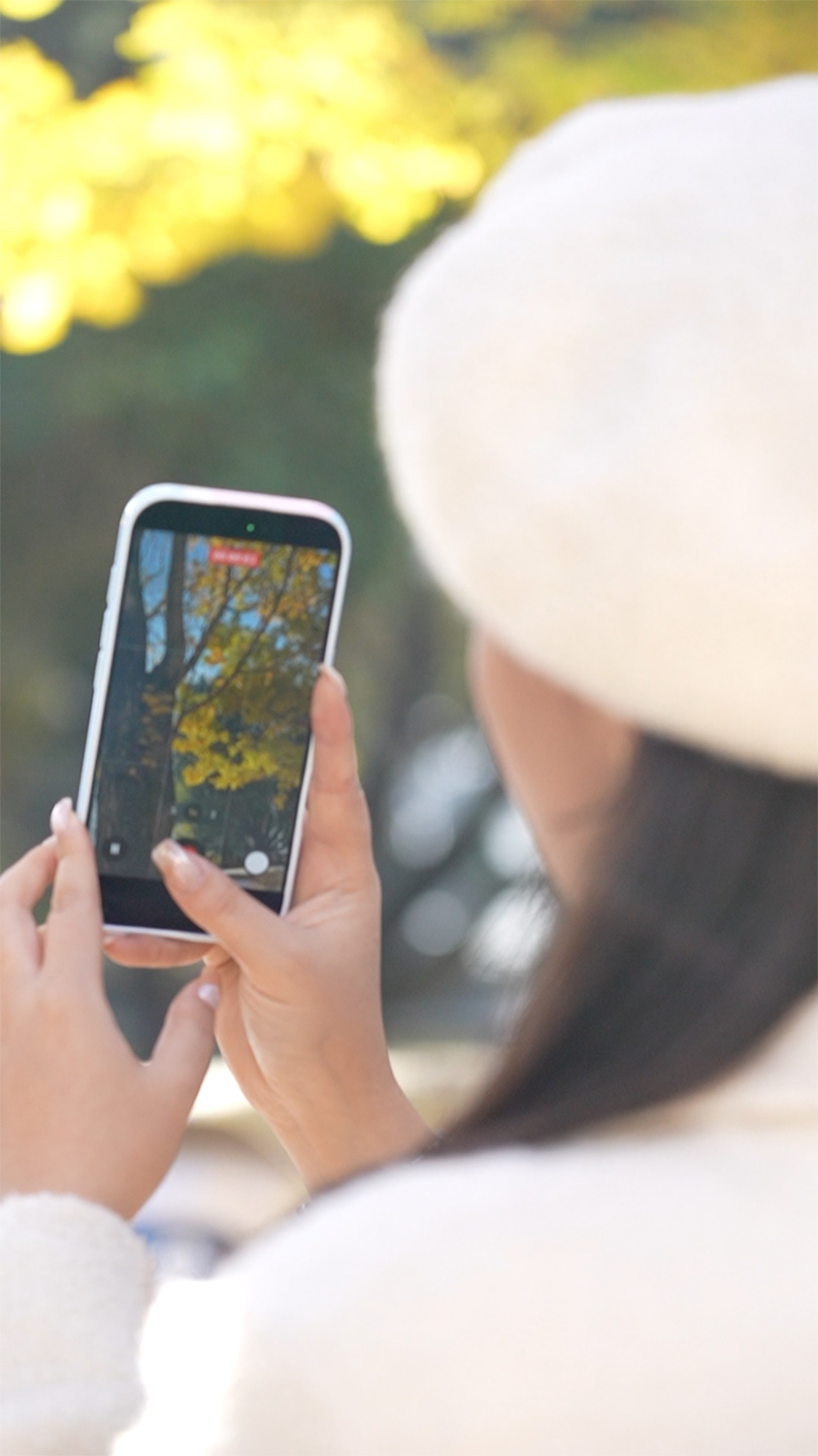 阳光慢慢爬上枝丫,穿过稀疏的叶片,在青灰色的墙面上投下细碎的金斑,暖得恰到好处,驱散了冬晨的微凉。此时适合穿米白色羊绒衫、浅驼色大衣或围巾,浅色系衣物与金黄银杏、青灰老墙相映,镜头里满是温柔的层次感,站在枝丫低垂处逆光拍摄,霜叶与光影交织,氛围感拉满。