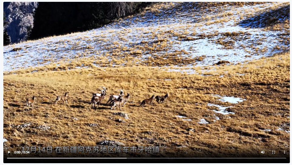 北山羊现身库车悬崖峭壁 奔跑跳跃如履平地