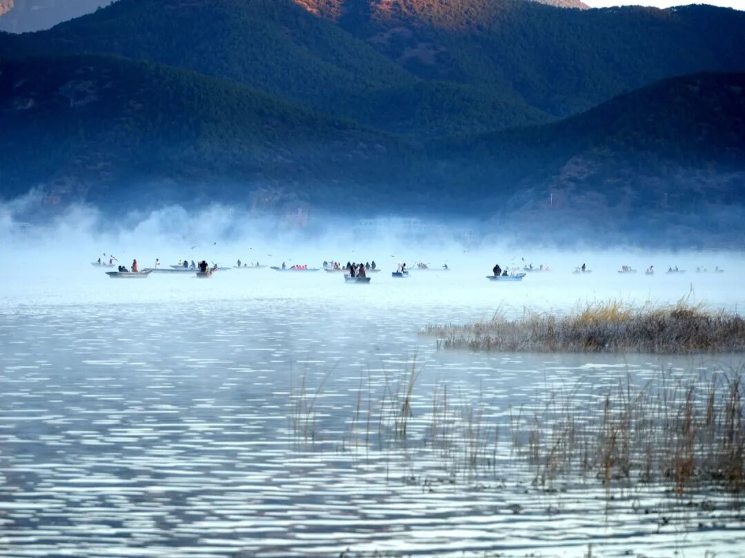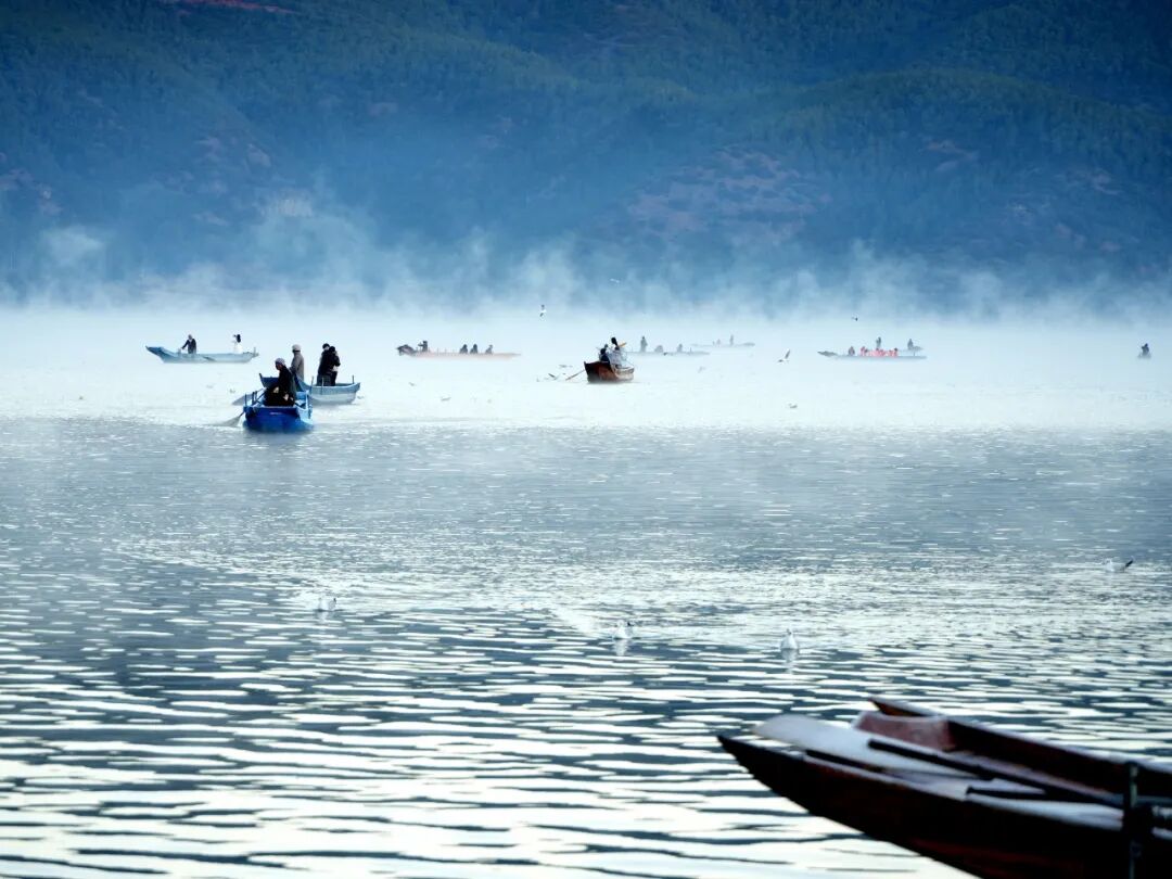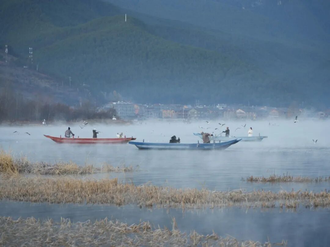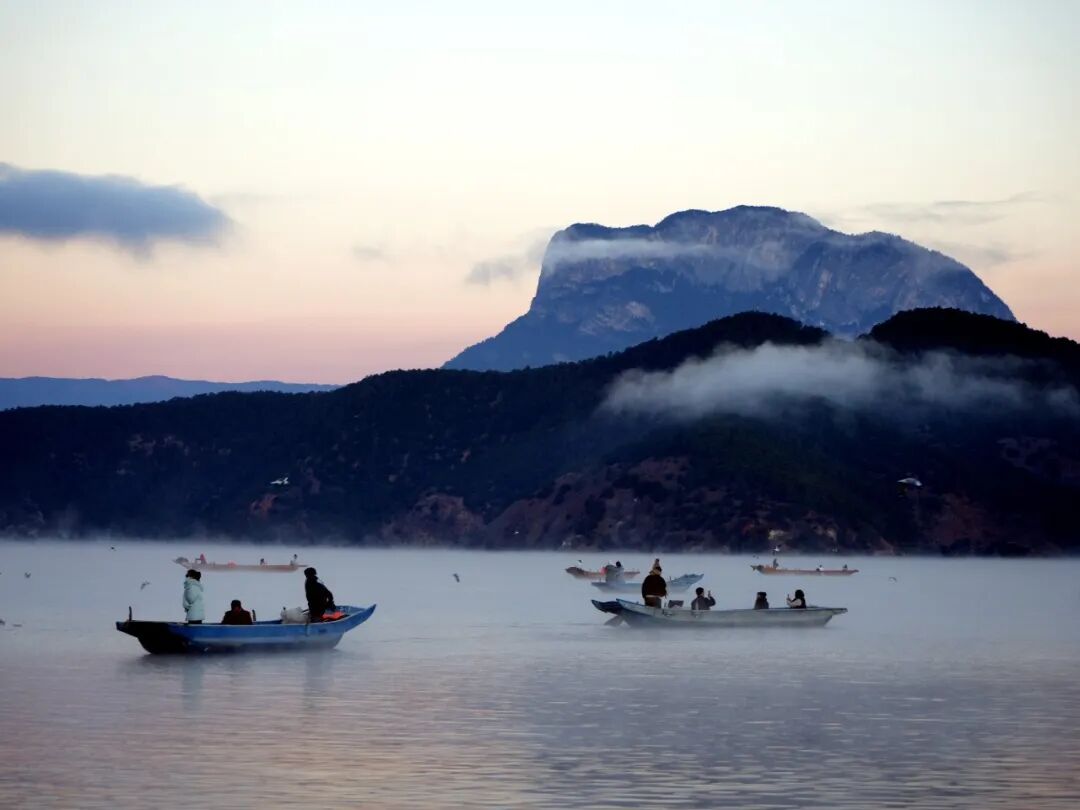 当前正值晨雾浓度与灵动度最佳时段,据景区数据显示,12月泸沽湖晨雾出现率高达80%,搭配远道而来的西伯利亚红嘴鸥,构成了“雾漫湖面、鸥鸣其间”的绝美画面。