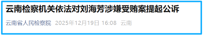 云南检察机关依法对刘海芳涉嫌受贿案提起公诉