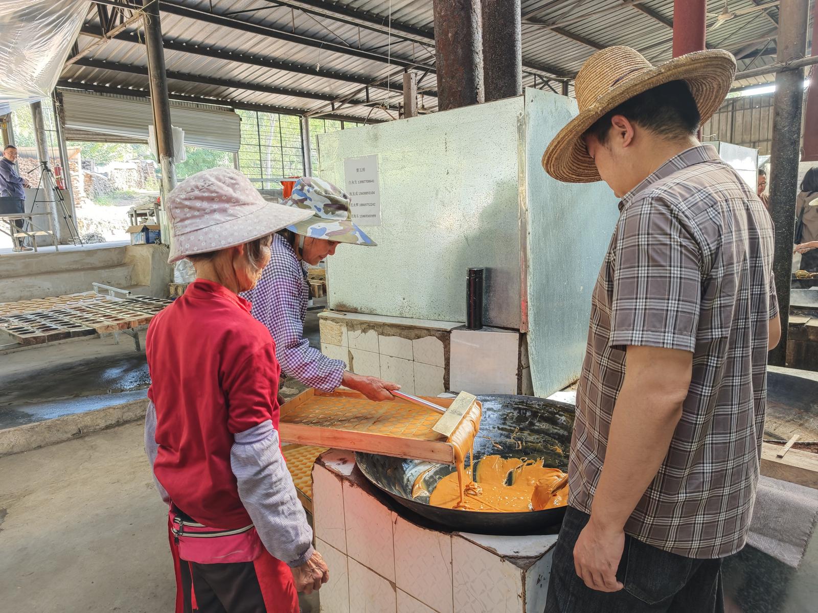 “西尼红糖最大的特色就是不添加各种色素、添加剂,都是用古法,烧柴火熬制出来的。”除了传统的圆形、爱心型的块状红糖,西尼村还推出了特色的拉丝红糖体验项目,让游客在购买的同时,能亲身感受古法制糖的乐趣。“除了购买成品,还可以来体验拉丝红糖,在出锅之前把它盛出来,一直不停的拉,把它拉成白金色,也是很香的,有点像小时候吃的叮叮糖的口感。每次来买的人不光是买,他们也很喜欢来体验这个项目。”罗丹说道。