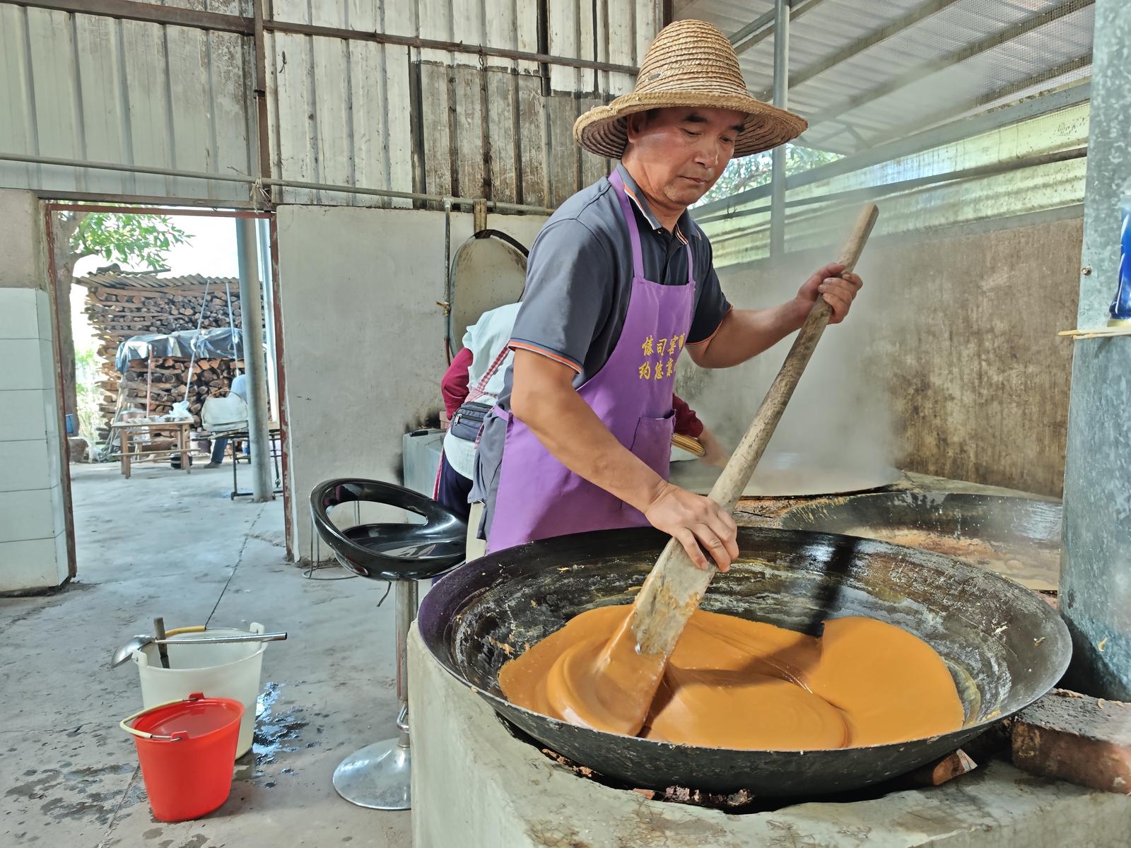 走进漠沙镇西尼村,空气中弥漫着一股浓郁醇厚的蔗糖香气。村内的红糖加工作坊里,柴火正旺,一口口大铁锅整齐排列,浓稠的糖汁在锅中咕嘟翻滚,村民白富先正守在铁锅旁,不时搅拌着锅中的糖汁,他介绍:“西尼红糖我们从老人那辈就煮着了,要慢慢的熬煮,时间要控制好,大概四十分钟熬一锅。”据了解,西尼红糖的熬制工序繁杂,从选料、榨汁、过滤,到熬煮、浇模、成型,每一步都有严格的讲究,尤其是熬煮环节,需全程文火慢熬,时刻掌控火候,才能保证红糖的金黄色泽、醇厚口感与纯正风味。