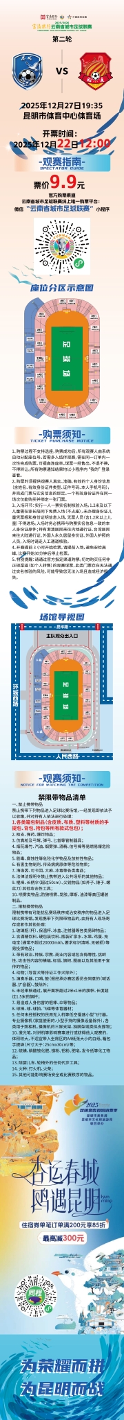 昆明队VS昭通队门票开售 12月22日中午12:00开抢!