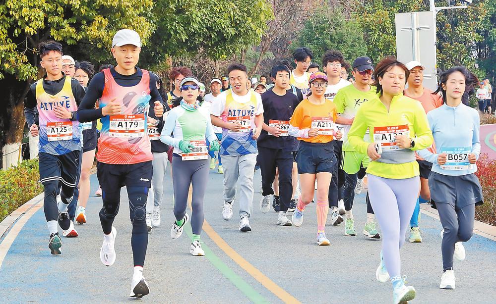 2025爱徒野滇池“冬季恋歌”半程马拉松赛比赛现场。云南日报 记者杨峥/摄