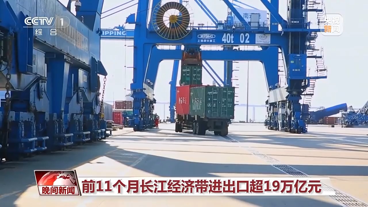 今年前11个月,长江经济带11省市外贸进出口19.12万亿元,创历史同期新高,同比增长6.3%,占全国进出口总值的46.4%。其中,对共建“一带一路”国家进出口9.73万亿元,增长10.8%。