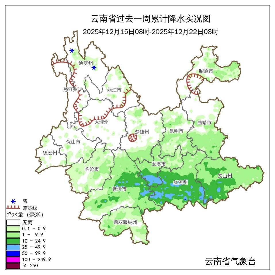 上周,受冷空气和西南气流影响,12月16日夜间至17日云南中东部、西北部最高气温下降2~4℃、局地下降6~7℃。