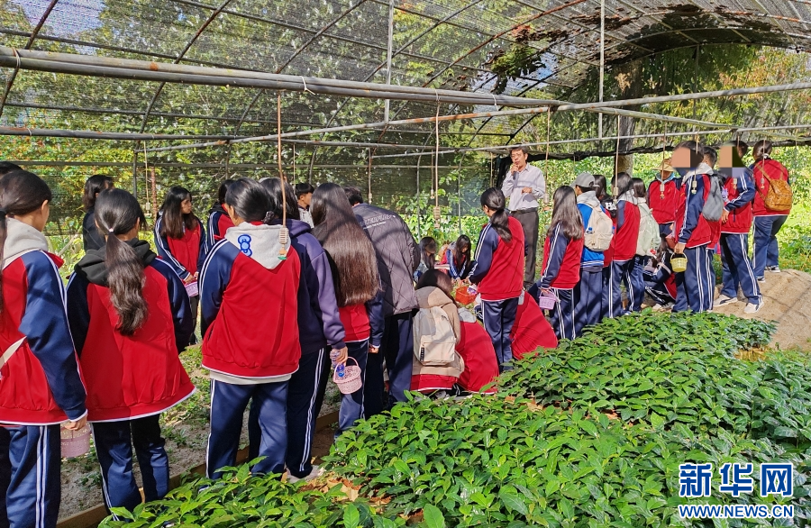 研学团到普洱漫崖咖啡庄园体验学习(12月10日摄)。新华网发(普洱漫崖咖啡实业有限公司 供图)