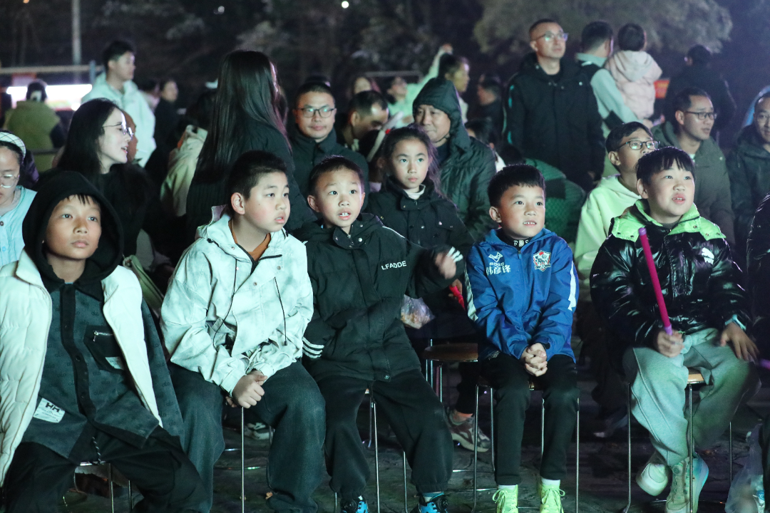 比赛开始前,森林公园观赛区早已热闹非凡。精心布置的巨型直播屏幕前坐满了球迷,许多人手持加油棒,脸上洋溢着兴奋与期待。随着比赛进行,每一次精彩传球、每一脚射门都引发阵阵欢呼与掌声。人们挥舞着旗帜,摇动着加油棒,小朋友也兴奋地加入助威行列,呐喊声穿透冬夜。当曲靖队破门得分的瞬间,整个公园瞬间沸腾,人们振臂高呼,声浪此起彼伏。