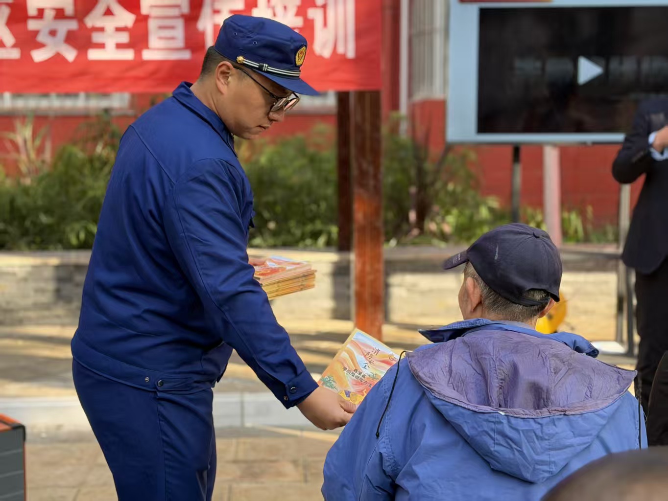 火灾隐患自查环节,宣传员聚焦日常用电与用火安全:用电需认准电器 3C 认证,杜绝插线板超负荷、电动车入户及飞线充电,用火恪守 “三关三清” 原则,同时明确油锅起火禁用水,可通过锅盖或灭火毯处置,还提示了明火使用、烟头处理等细节。应急处置教学中,宣传员结合案例讲解初期火情应对:小火可自行扑救并报119,火势失控时需用自救面罩,在保证安全的前提下低姿捂鼻沿安全通道有序逃生。为加深居民记忆,活动设置了互动提问环节,“两个保护生命安全的通道是哪两个?”“消防车通道至少要多宽?”等针对性问题引发居民踊跃抢答,宣传员结合答案进一步强化了居民对疏散通道和消防救援通道的重要性的认知。