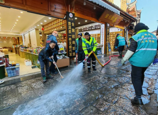 扮靓古镇迎元旦!束河古镇景区开展爱国卫生运动