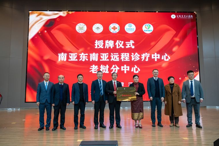会上,昆明理工大学向顺利通过评审并获批“昆明理工大学教学医院”资质的玉溪市中山医院授牌。中国—老挝医疗数字专线也正式开通。玉溪市中山医院以老挝玛霍索综合医院为基站牵头建设的数字医疗专线,是中老首条医疗专线,该项目对老挝卫生信息化建设具有重要意义,已被老挝卫生部认定为国家级信息化建设项目,为双方下一步深化跨境医疗合作搭建了坚实的“数字桥梁”。