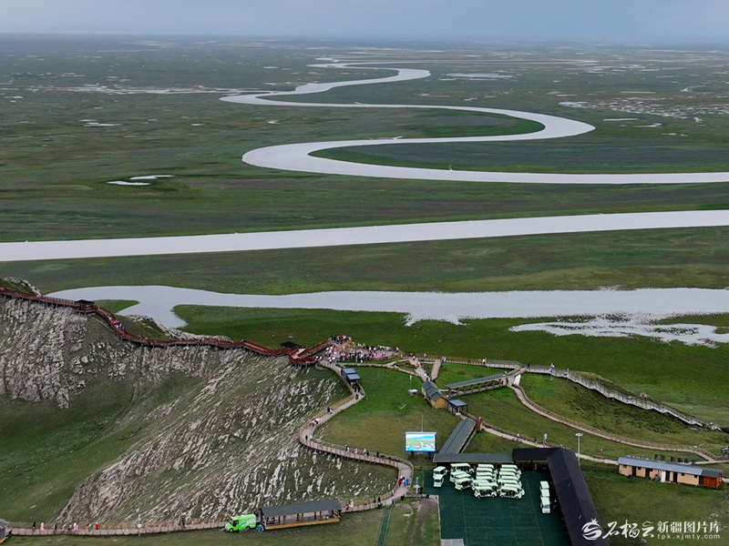 在和静县巴音布鲁克草原,蜿蜒的开都河、绿绿的草场构成一幅美轮美奂的生态画卷(8月2日摄)。确·胡热摄