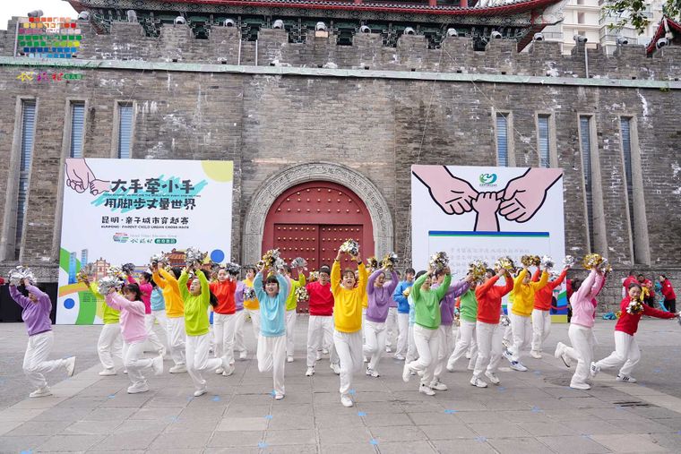 活动当天,参赛家庭从有着“滇南第一关”之称的近日楼出发,沿着精心设计的线路一路前行,仿佛踏入了一条流动的历史长河。在东寺塔下,孩子们仰望古老建筑,感受历史的厚重。在司马巷的彩绘文化墙旁,亲子家庭一起了解鱼课司的历史和少数民族的生活习俗。走进云南省滇剧院,家长和孩子们直观感受“滇粹”的艺术底蕴,在滇剧演员的身段唱腔中领略传统戏曲之美。在金马碧鸡坊,家长与孩子共同探寻“金碧交辉”的千古奇观传说,感受昆明“过去与现在”的对话。活动采用“行走+研学”为核心模式,将体育竞技与文化传承深度融合。