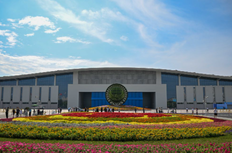 这是2025年9月1日拍摄的天津梅江会展中心外的花坛。新华社记者 孙凡越 摄