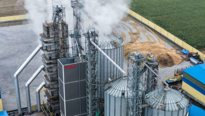 10月11日,在山东省东营市广饶县李鹊镇一处粮食收储企业,大型烘干设备在烘干秋粮。新华社发(刘云杰摄)