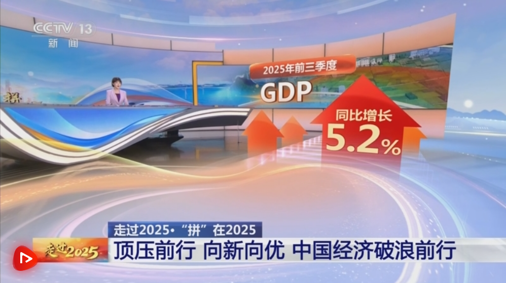 央视网消息:2025给我们留下了太多难忘的记忆,这一年,面对复杂多变的外部环境和内部结构调整的持续深化,我国经济顶住压力,展现出强大的韧性和蓬勃的活力。国家统计局发布的数据显示,今年前三季度,中国国内生产总值(GDP)1015036亿元,按不变价格计算同比增长5.2%。预计2025年全年,我国经济增长5%左右,经济总量有望达到140万亿元左右。