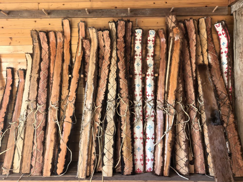 这是12月25日在斯兰别克·沙和什的家庭工坊中拍摄的手工毛皮滑雪板。新华社记者 王立明 摄