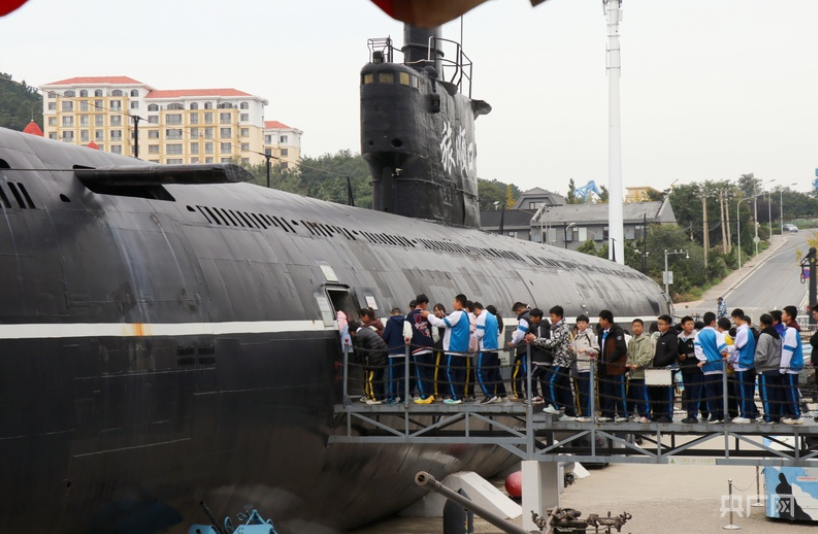游客排队进入潜艇(央广网记者 刘培俊 摄)