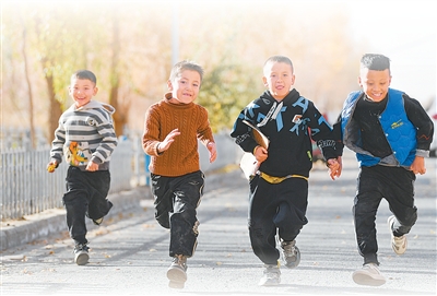 小朋友奔跑在达里雅布依新村。 |
