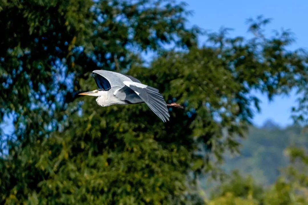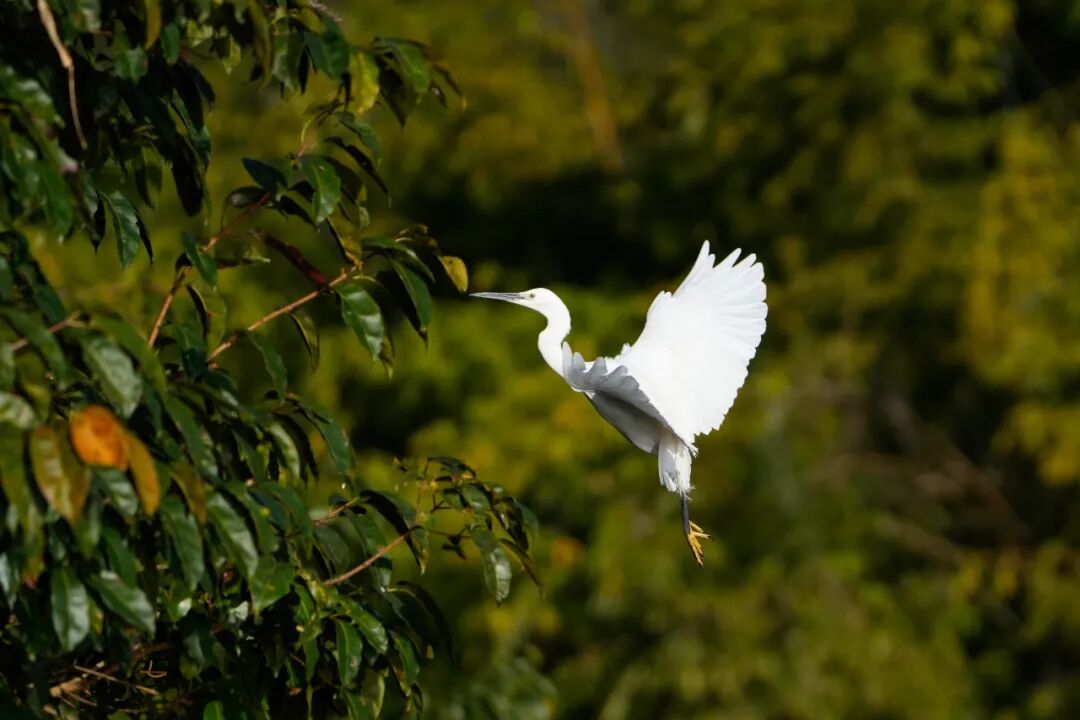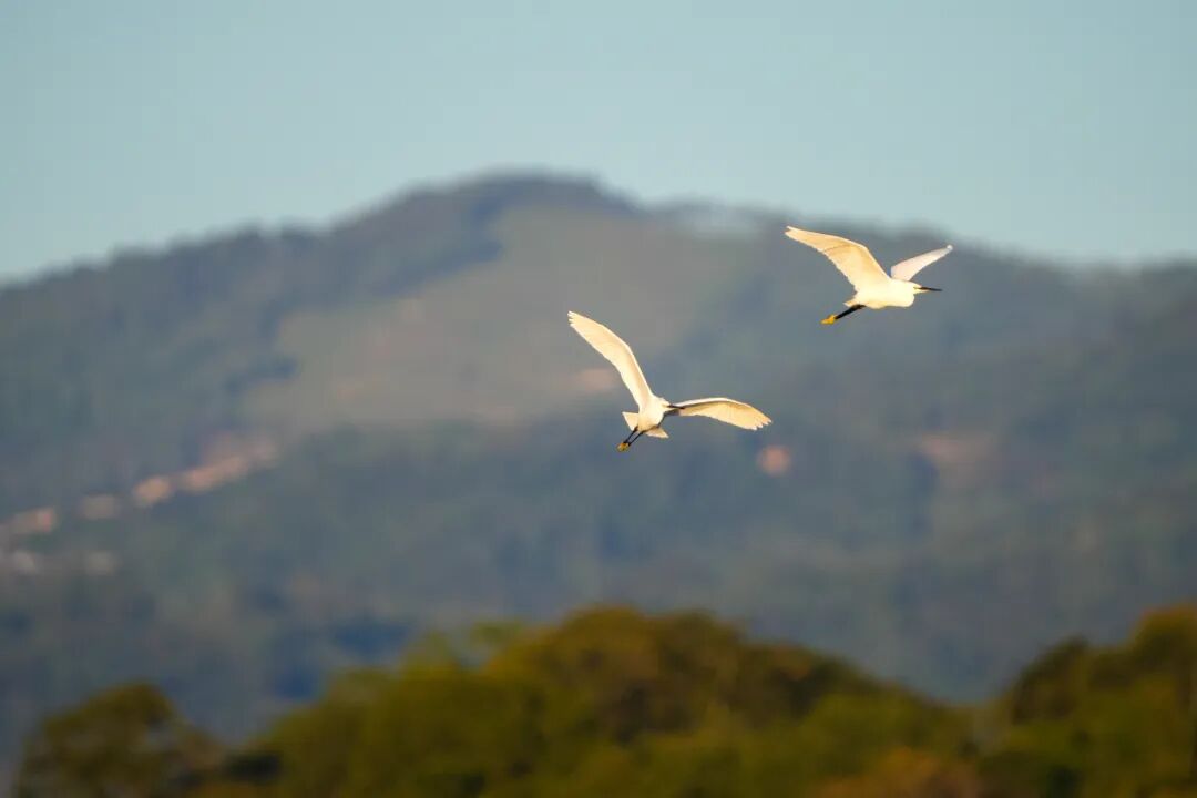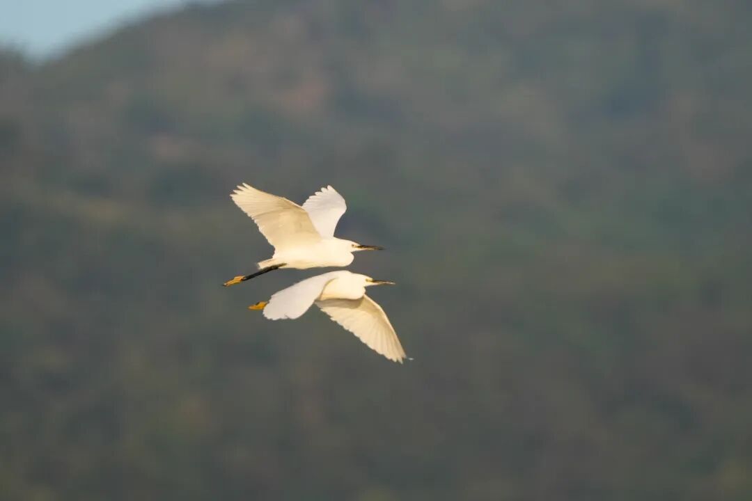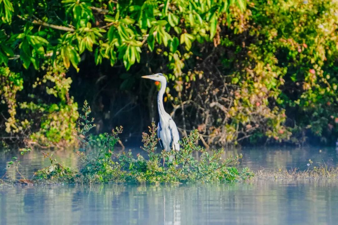 清晨的薄雾还未散尽,麻栗坝水库的水面就热闹了起来。一只只苍鹭率先“登场”,修长的脖颈优雅弯曲,洁白的羽翼在晨光中泛着柔光。它们静立浅滩,像一个个精致的玉雕,凝视着水面下的动静。
