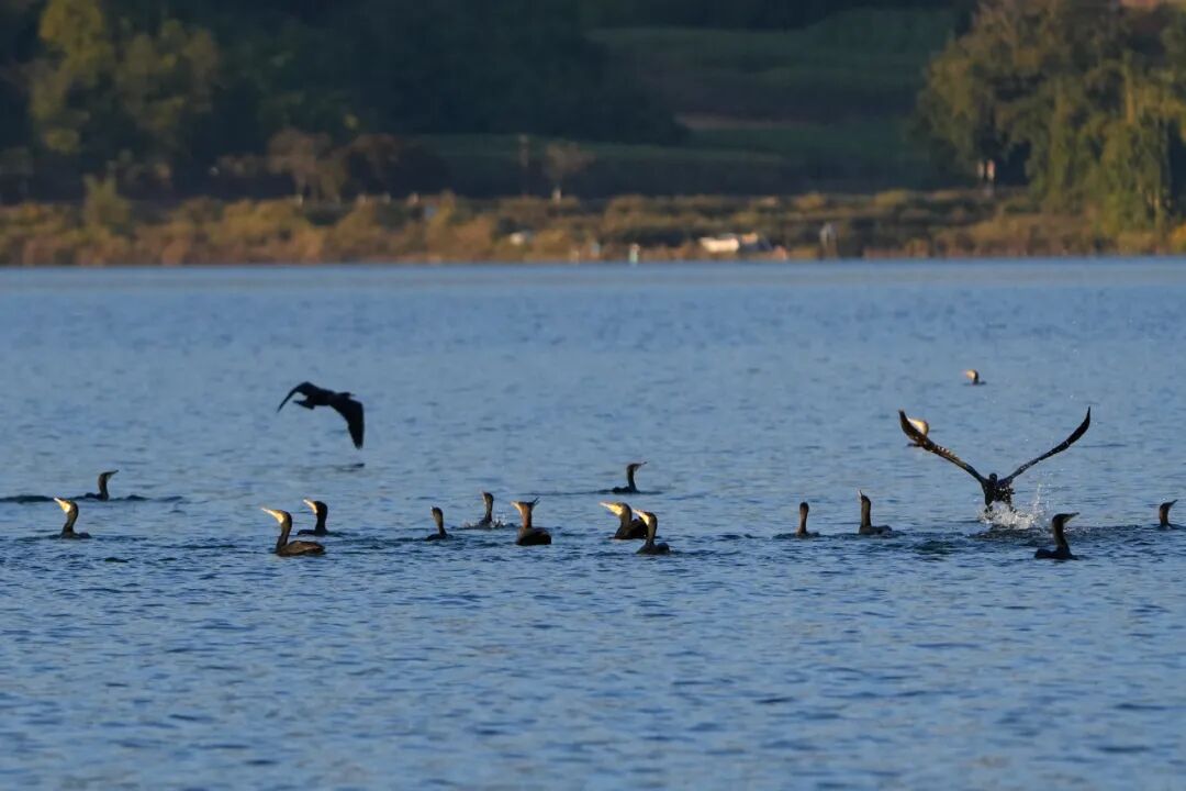 午后的库区更是惬意。阳光洒在平静的水面上,波光粼粼。各类候鸟或分散栖息,或结伴翱翔,天空与水面相映成趣,构成一幅灵动的生态画卷。站在岸边远眺,目光所及之处,皆是候鸟与自然相融的美好模样,让人忍不住放慢脚步,静静感受这份治愈与安宁。