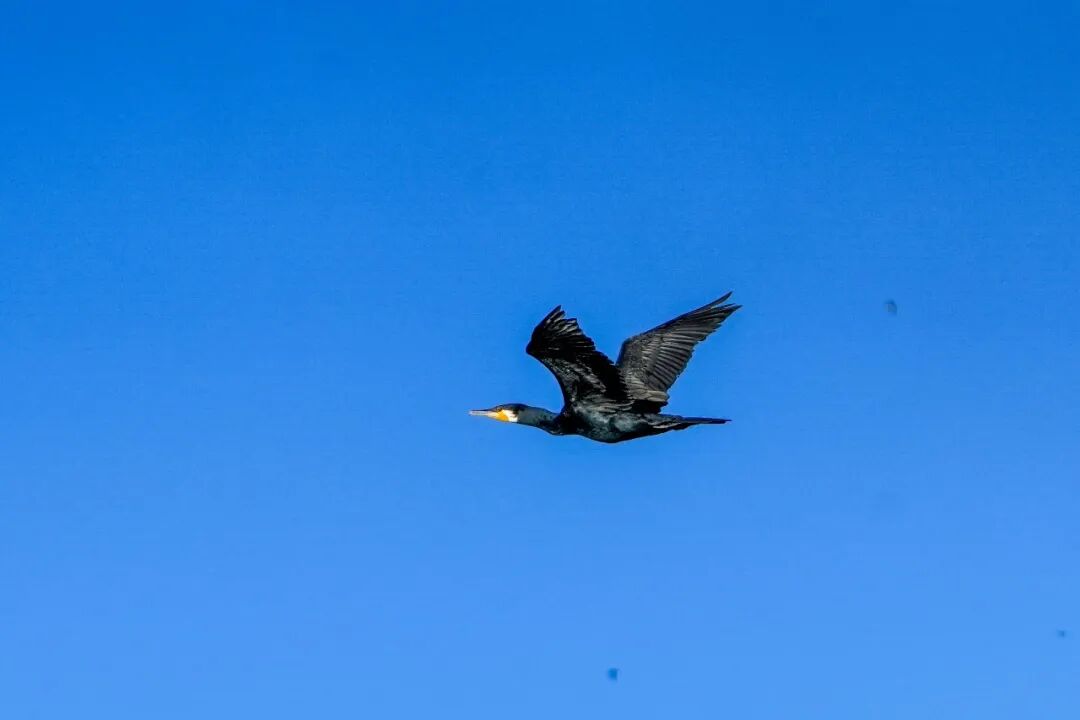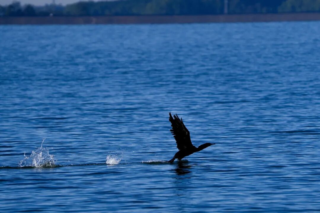 这边苍鹭尽显优雅,那边鱼鹰早已开启“硬核捕食模式”。矫健的身影在天空中结伴盘旋,锐利的目光紧盯着水面,找准目标后便像箭一般俯冲而下,“噗通”一声扎进水里,转瞬之间就带着战利品冲出水面,翅膀上的水珠簌簌滑落,引得周边水鸟纷纷侧目。