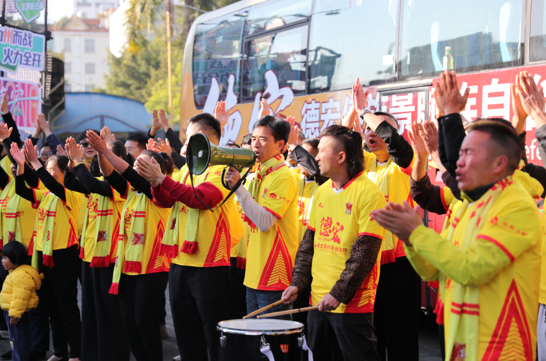 “你为我们去战斗,我们站在你身后!德宏队是我们的骄傲,捍卫德宏荣耀!”现场球迷手持写有“德宏”字样的旗帜与助威的横幅,齐声高呼口号,铿锵有力的呐喊将出征氛围推向高潮。不少球迷表示,德宏队远赴客场,部分球迷选择随队出征,更多球迷将通过线上方式持续关注比赛,始终做球队最坚实的后盾。