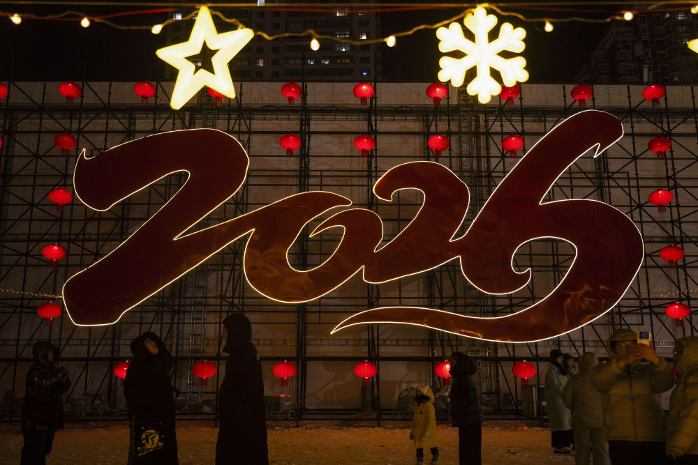 2025年12月31日,“冰城”哈尔滨多处景点灯光璀璨,吸引众多游客前来跨年。新华社记者 张涛 摄