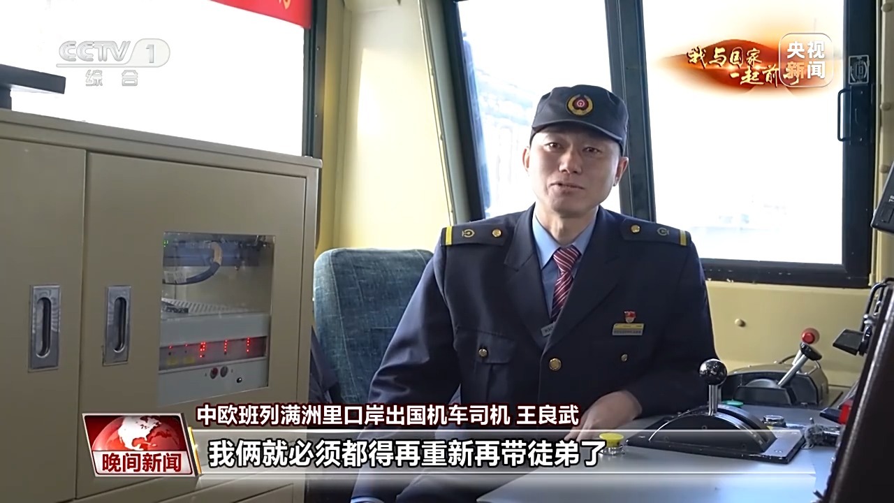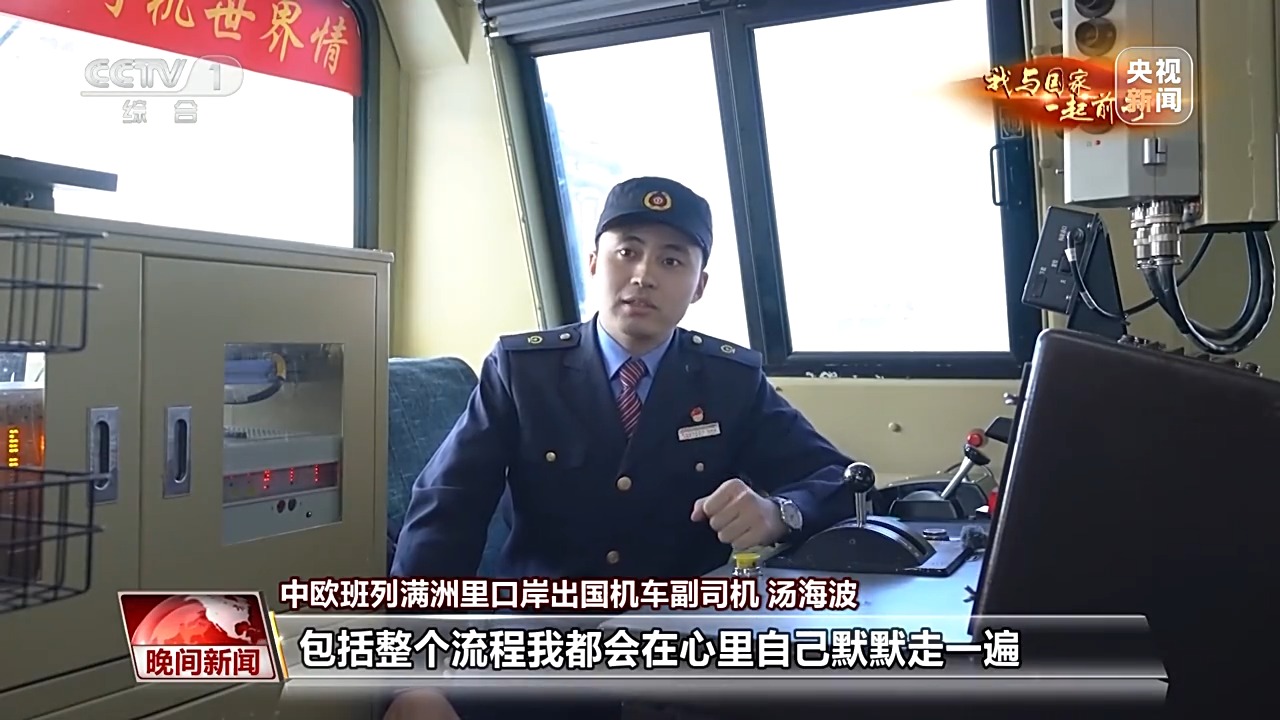 中欧班列满洲里口岸出国机车司机 王良武:我现在和他一样都是司机长,我俩就必须都得再重新再带徒弟了,就不能再在一起了。前两天我还跟他说,我说我不舍得离开你。作业的时候技术一定要过硬,在国内,基本上要把一个火车司机能干的活都干一遍了,才有这个机会到出国队伍里。